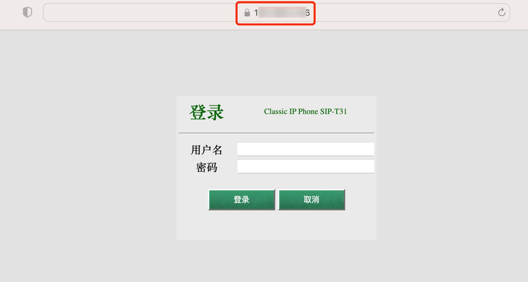 步骤2:在话机同网段的电脑浏览器内输入 步骤1 中获取的话机的 IP 地址进入话机管理页面。