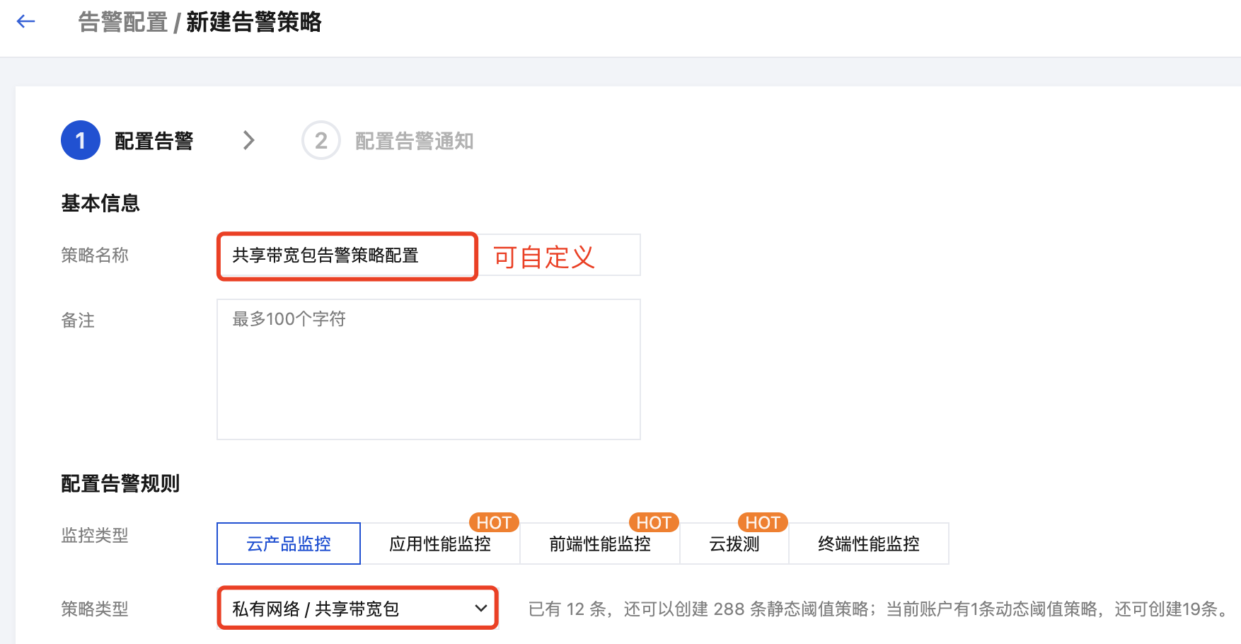 新建告警策略
