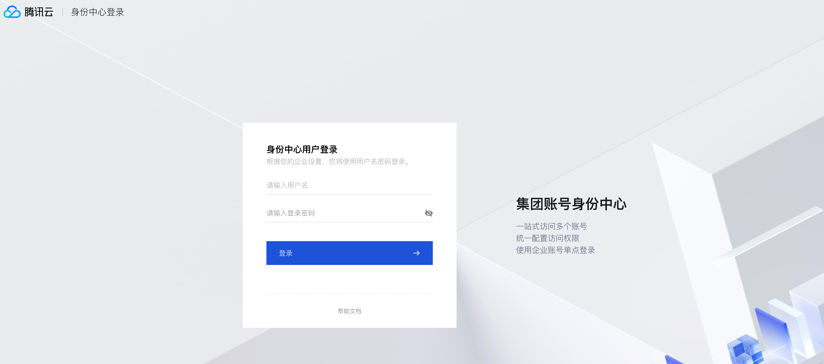 输入身份中心用户名和密码,然后单击登录。如需修改密码,请参考 重置用户密码。
