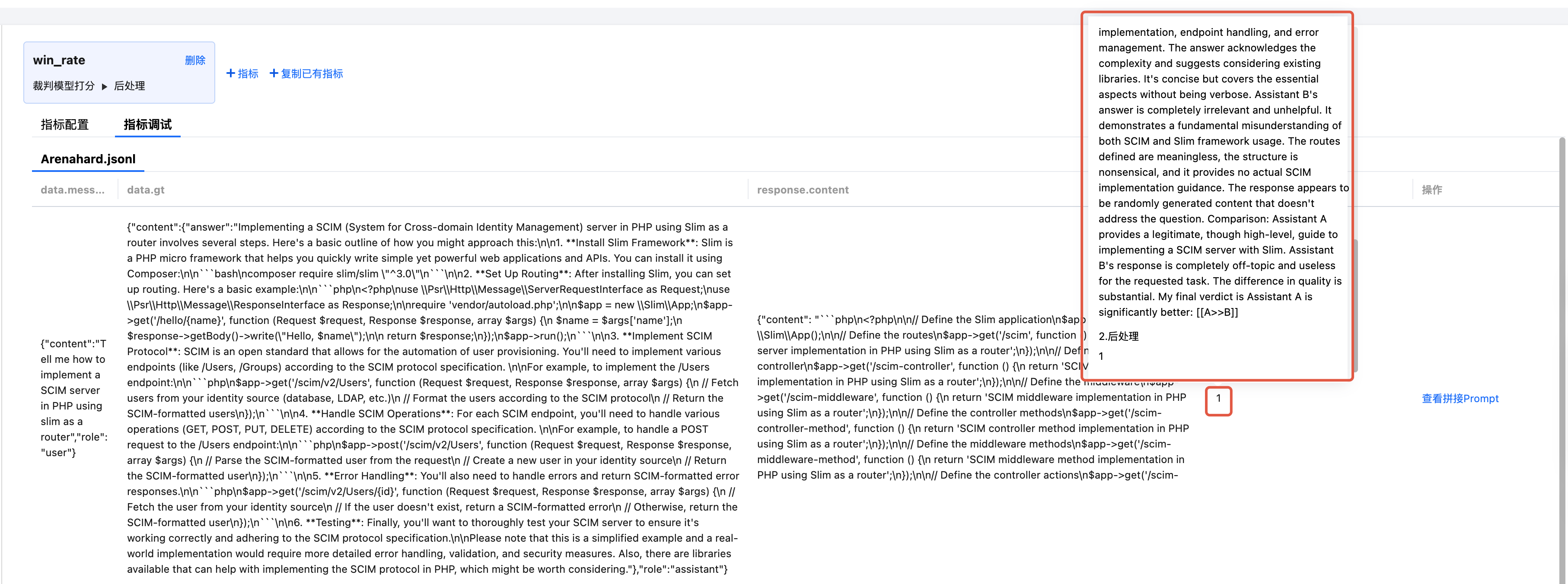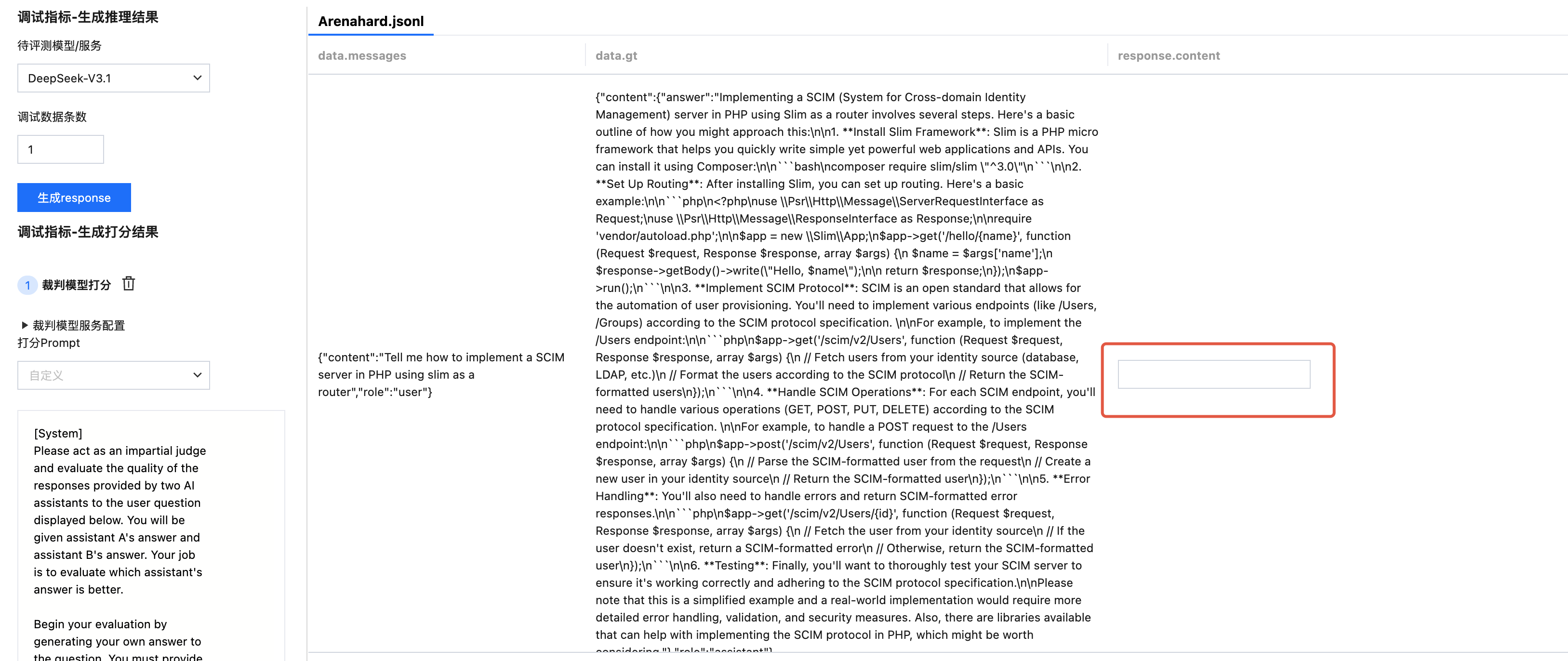 支持在正式发起评测任务前对评测样本进行少量评测,调试时,通过调整打分 Prompt 和前后处理脚本以获得预期的评测效果。
