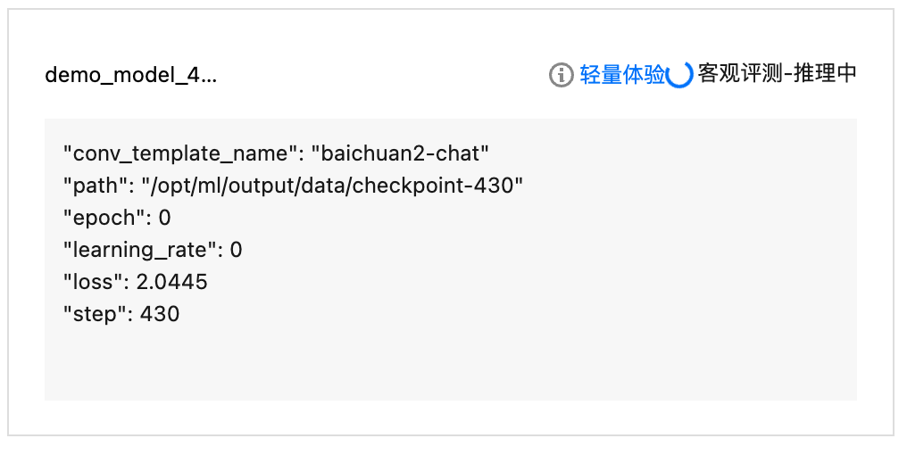 填好信息单击新建,会进入自动评测-推理中的状态,请您耐心等待。