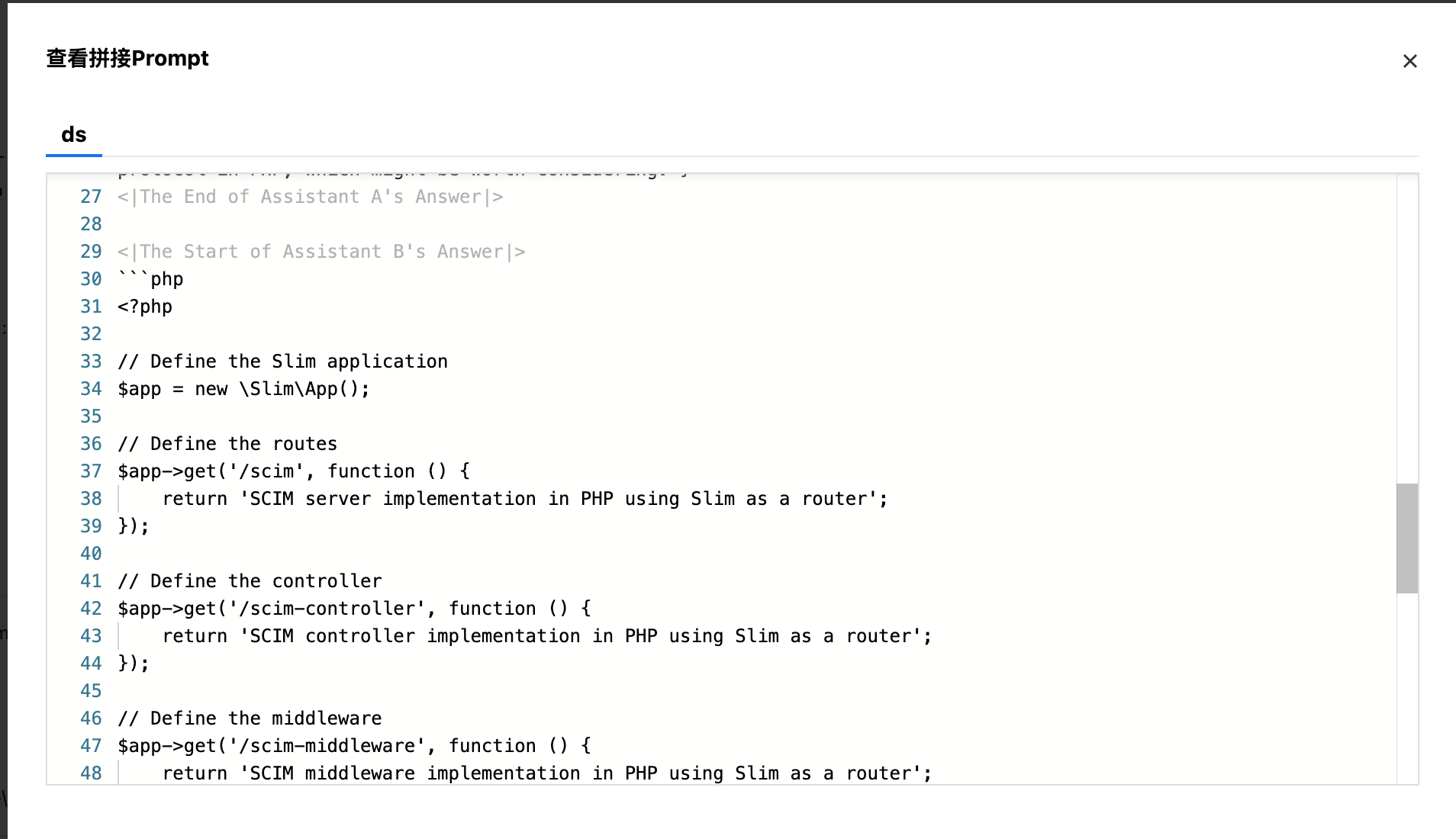 单击“查看拼接 Prompt“按钮,支持查看拼接 Prompt 效果。