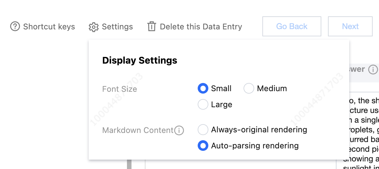 Click Settings on the right side of the title bar to configure the font size and whether to display the markdown content in the text.