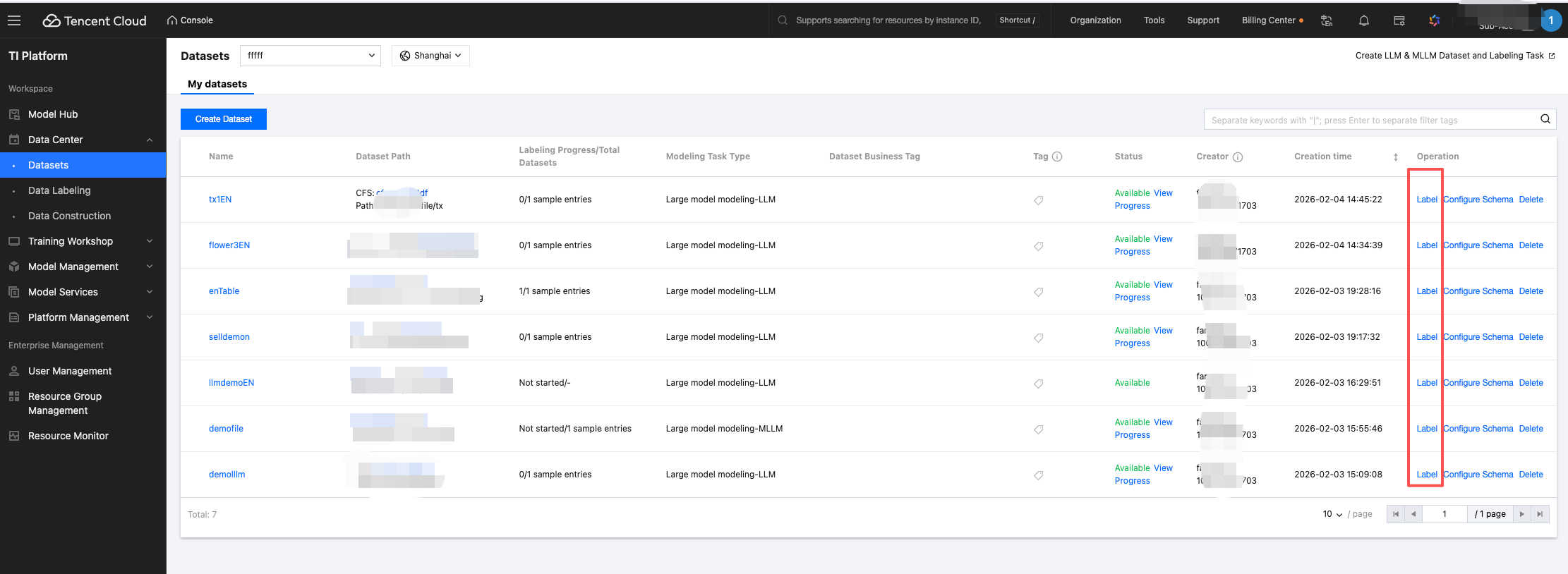 Tencent Cloud TI-ONE Platform (TI-ONE) provides the labeling feature for Large Language Model (LLM) and Multimodal Large Language Model (MLLM) datasets, allowing you to customize the schema information of a dataset to flexibly build a custom labeling workbench.