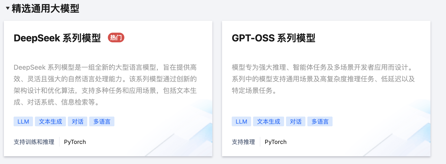 如果您需要部署专属的 DeepSeek 大模型推理服务,可参考如下指引进行操作。下文我们将选用尺寸相对最小的 DeepSeek-R1-Distill-Qwen-1.5B 模型进行部署实践。其他模型的操作流程类似,仅需注意算力资源的配置差异。