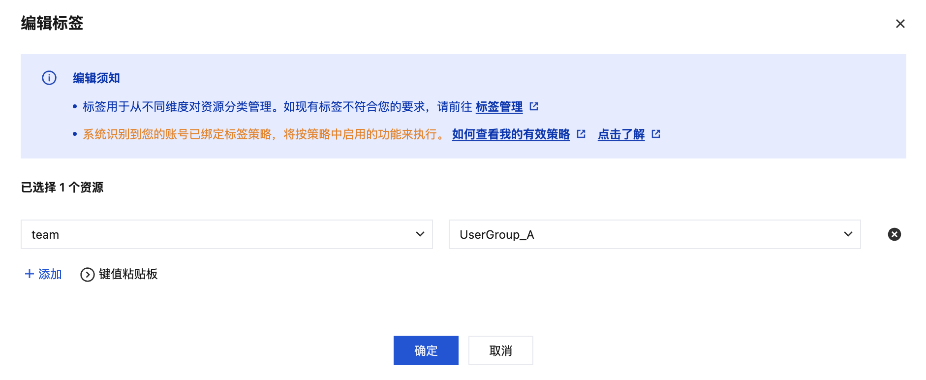 标签 | 1. 支持为数据源打上标签,标签选项的来源为 标签控制台。一个数据源可添加多个标签。 2. 打上标签后,可结合 CAM 策略控制数据源的可见权限,实现数据隔离的效果。 |