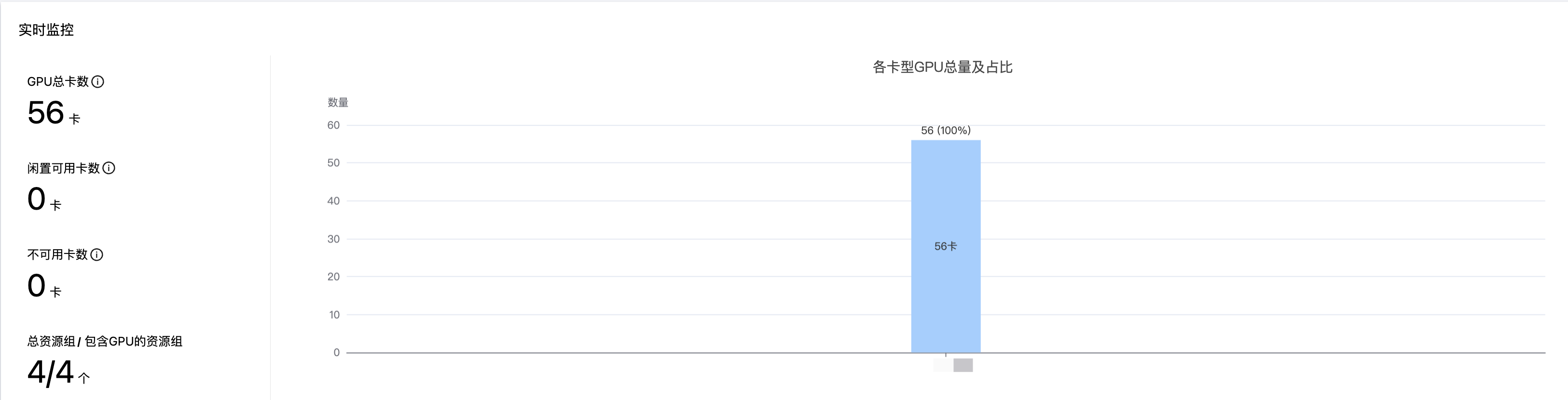 各卡型 GPU 总量占比 | 当前各卡型的卡数以及占总卡数的比例,柱状图中会同步展示被占用的卡数 |