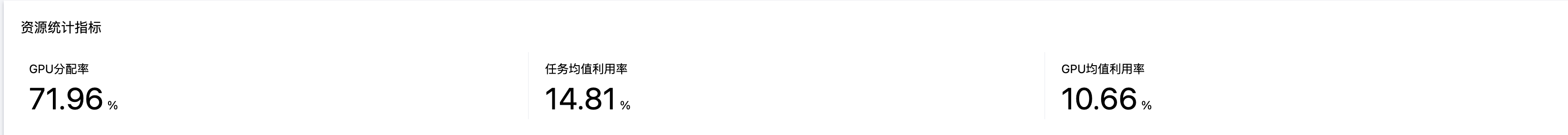 GPU 分配率 | 时间范围内被分配且使用的 GPU 卡时占总卡时的比例,具体计算公式详见“核心指标说明”标题的“资源组任务利用率/GPU利用率/分配率”(健康监测任务暂未纳入统计) |