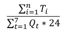,7代表统计周期为7天,24代表7天内t资源组中的卡一直存在,且每天计算卡的时长为24,实际情况中,如果卡不足24小时,按实际时长计算。分配率的卡时统计起始点为主容器开始运行;占用分配率的卡时统计起始点为 pod 完成调度。