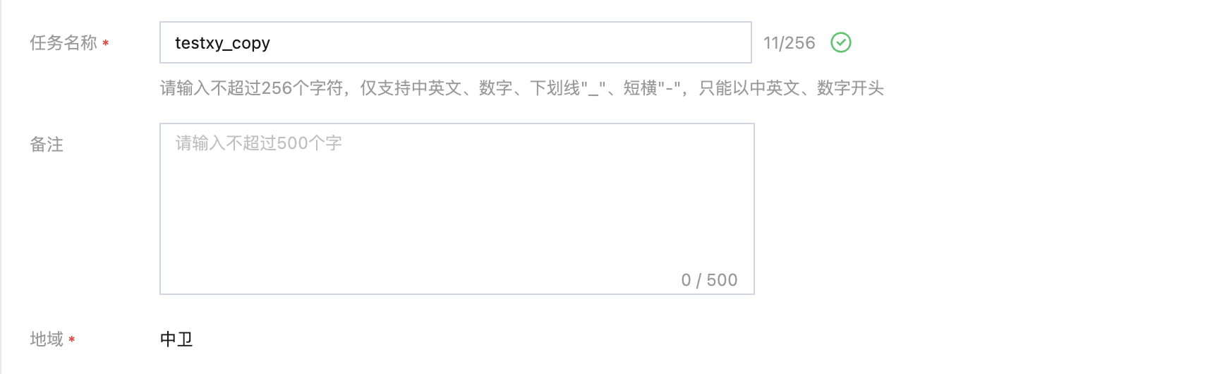 配置任务名称等基本信息。