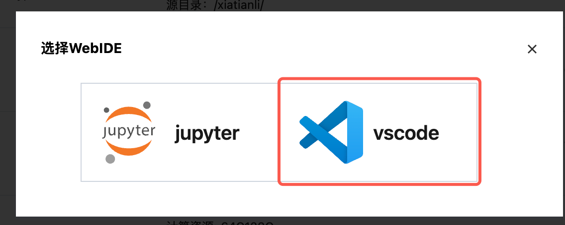 启动后,打开WebIDE,可根据个人喜好进行选择,这里选择vscode: