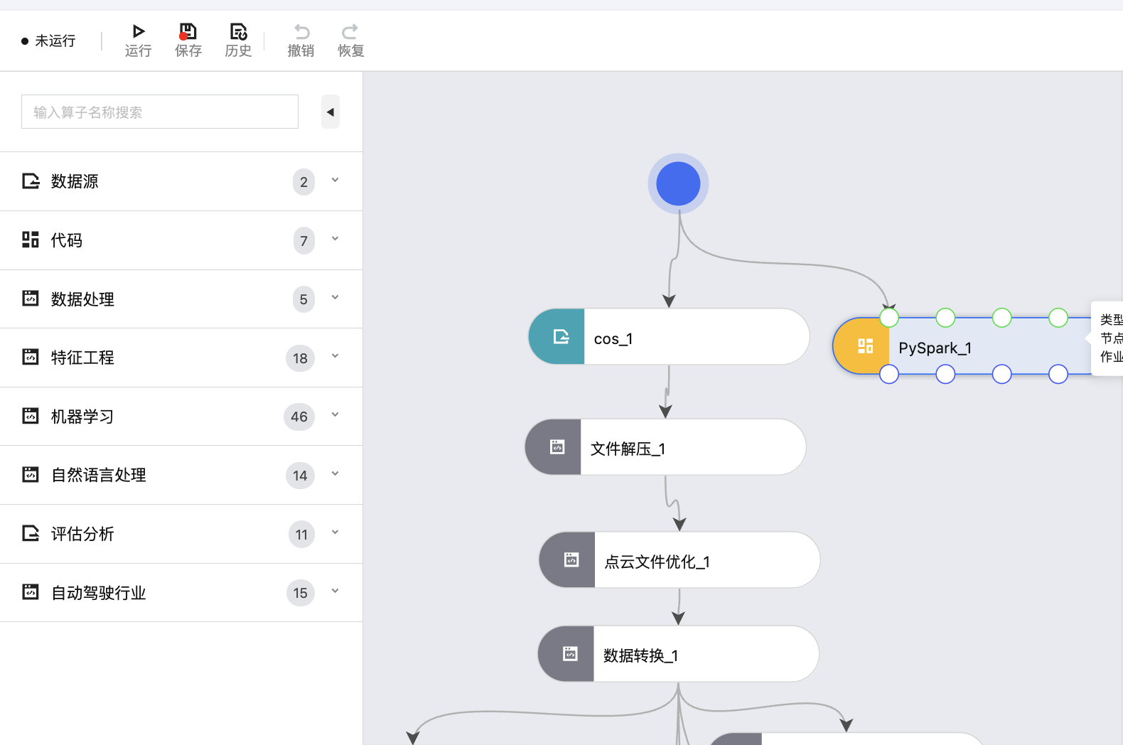 添加组件后,需要为每个节点配置运行参数:单击画布中的组件节点,右侧将弹出参数配置面板。