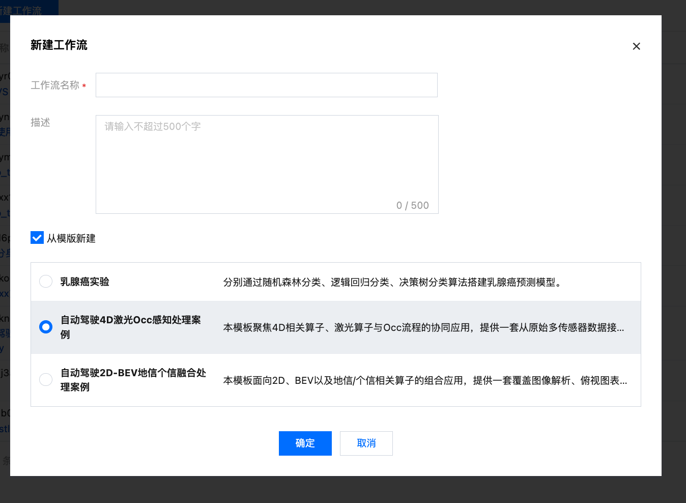 描述(可选):填写工作流的用途描述。