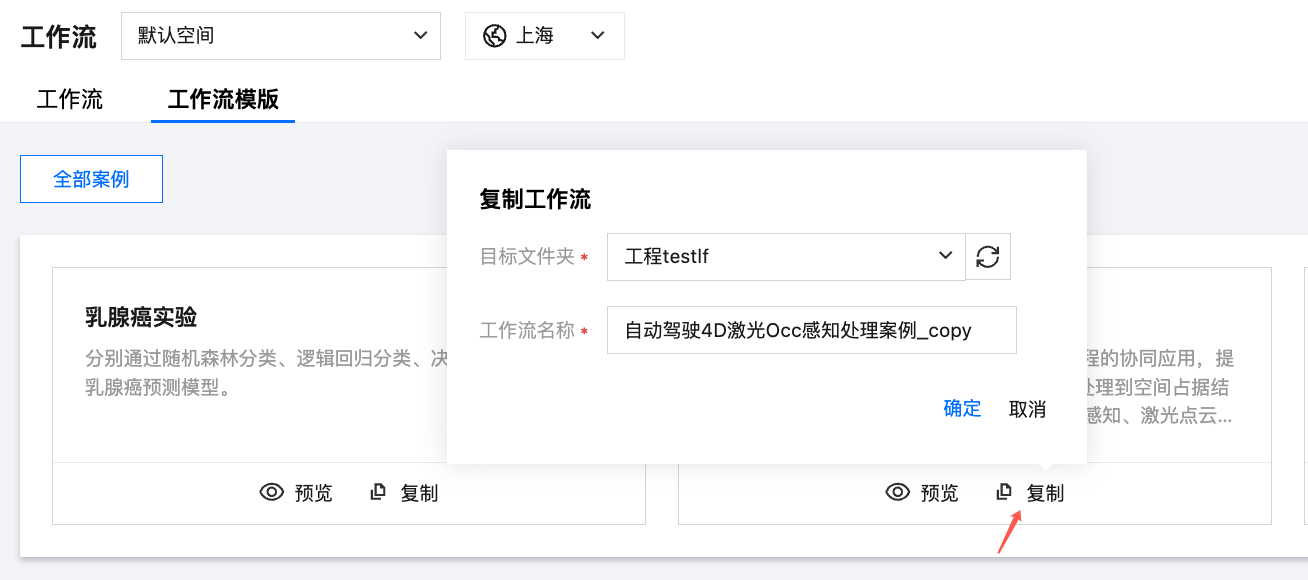工作流模板 | 由平台内置的可被多次复制并基于其进行修改的工作流示例 |