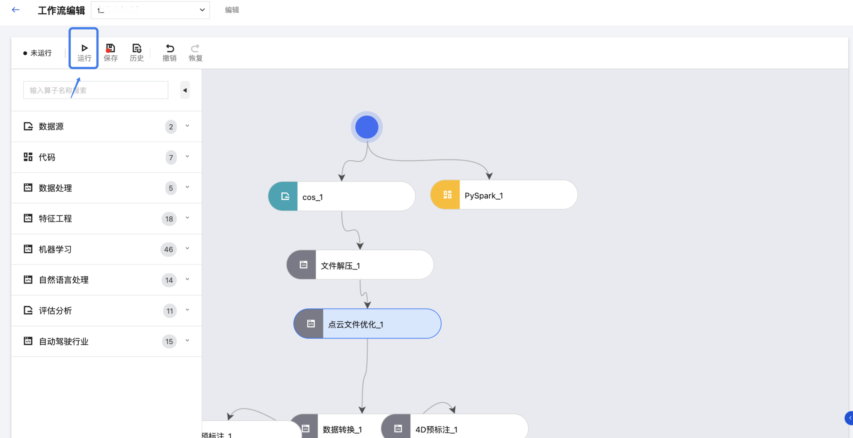 3. 在画布的左上角单击运行,工作流则会开始执行。
