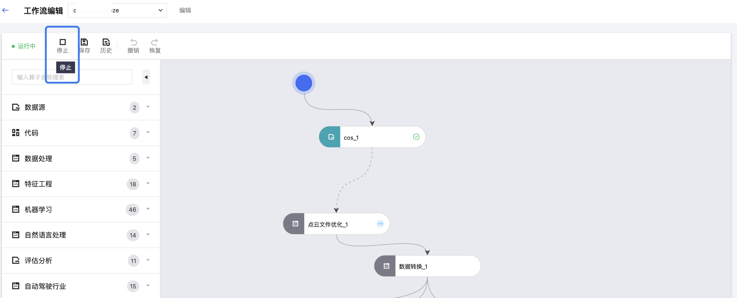 对于正在运行的工作流,您可以单击左上角的停止手动停止。