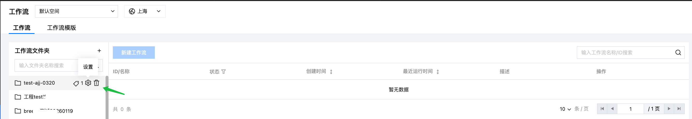 在“工作流文件夹”页面,单击目标文件夹操作列的删除。