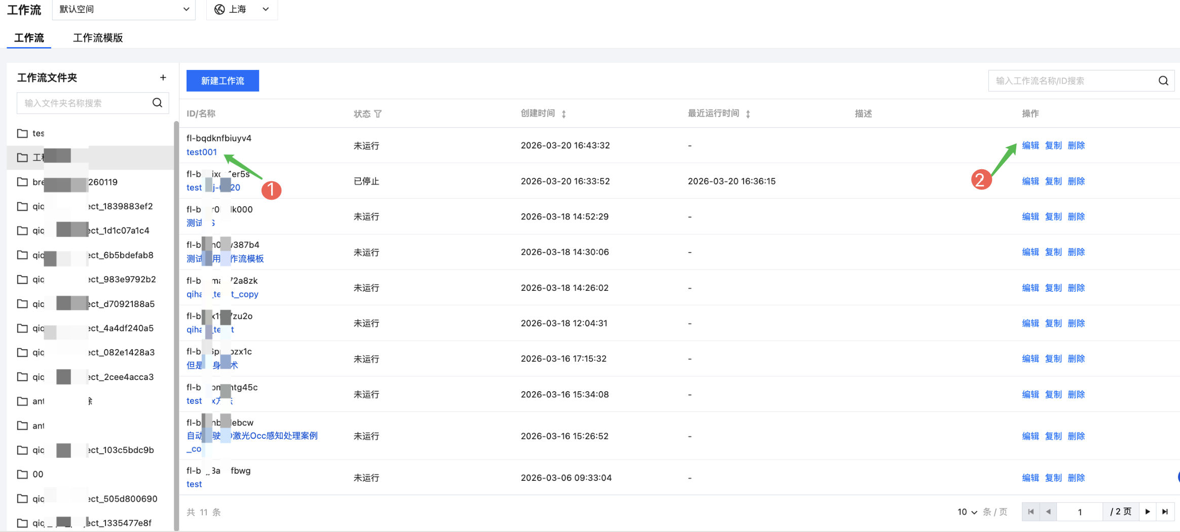 2. 在“工作流文件夹”页面,单击目标文件夹名称,并找到需要运行的工作流,单击名称进入工作流。