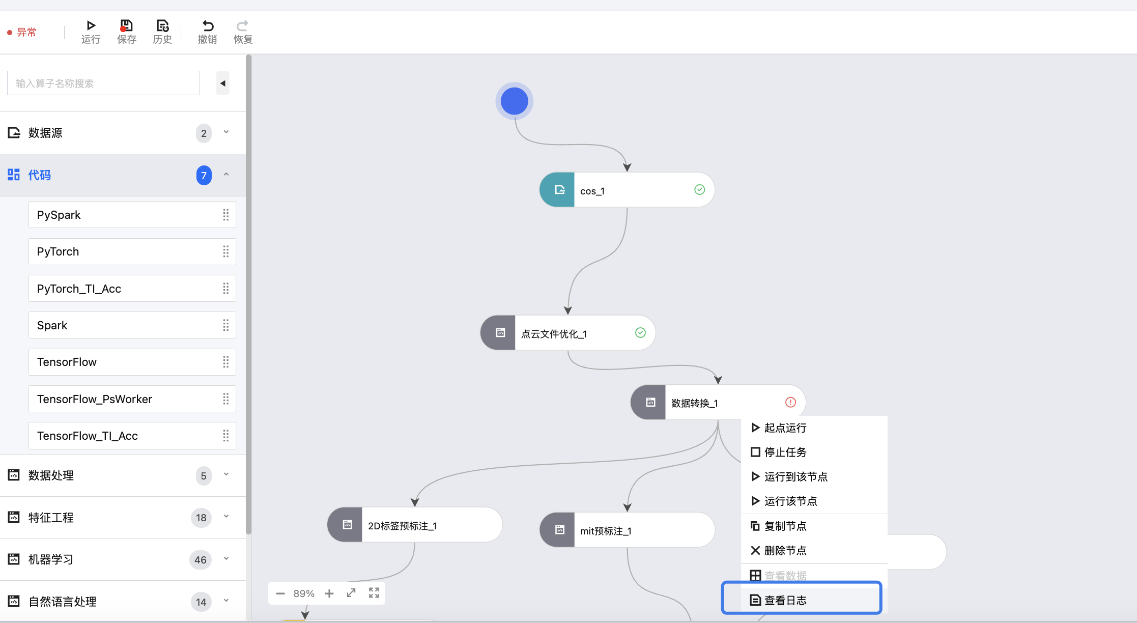 2. 单击目标节点操作列的日志进入日志查看页面。