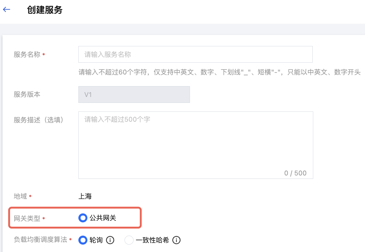 当用户还在业务测试体验阶段,需要快速部署一个在线服务以验证模型效果时,可以在部署服务时便捷配置“网关类型”参数为“公共网关“。