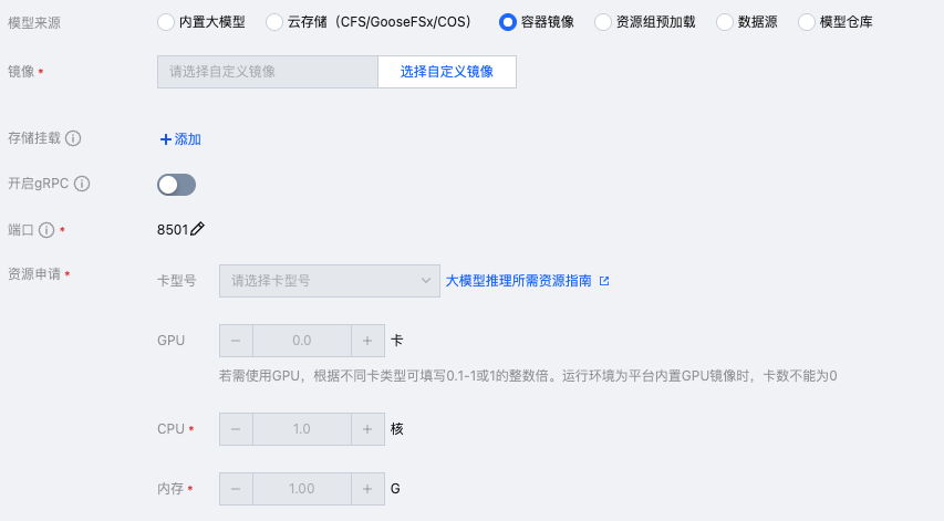 平台支持使用其它推理框架,通过自定义镜像的方式来部署模型在线服务。