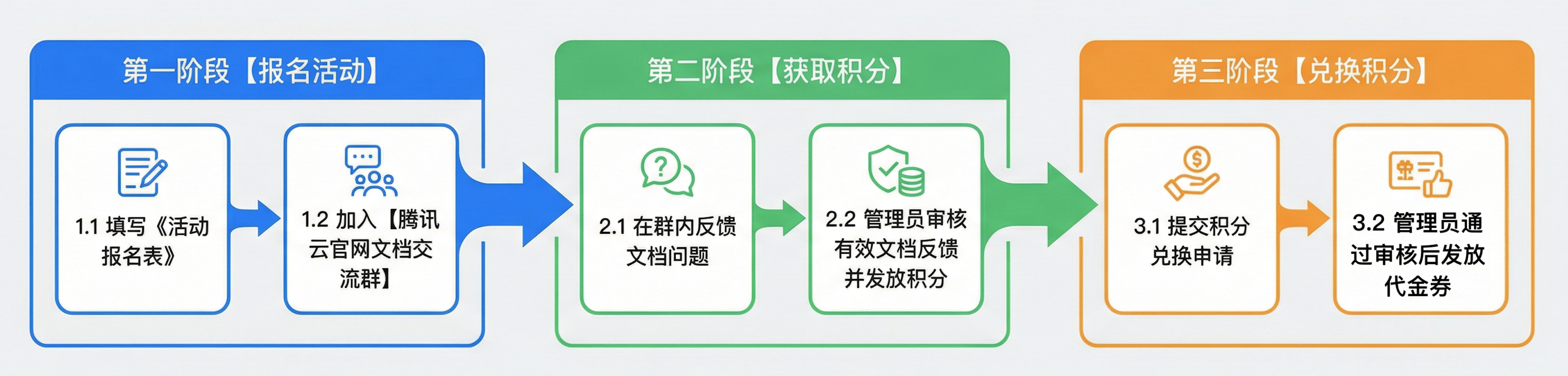 填写《腾讯云文档反馈官积分兑换申请表》,管理员核对后24小时内将代金券发送至用户兑换申请提供的腾讯云账号