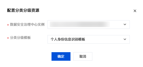 3. 在配置弹窗中,选择需要绑定的数据安全治理中心实例和分类分级模板,单击确定即可完成分类分级资源的配置。