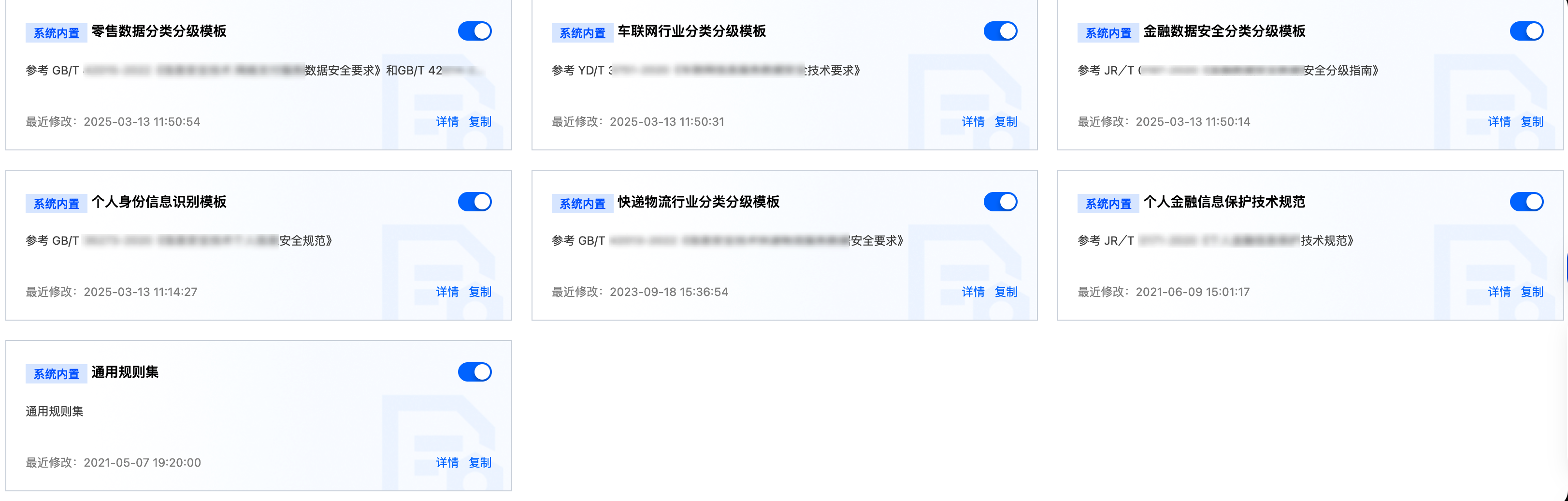 2. 在分类分级配置页面,参考 分类分级模板配置进行新建/导入模板。