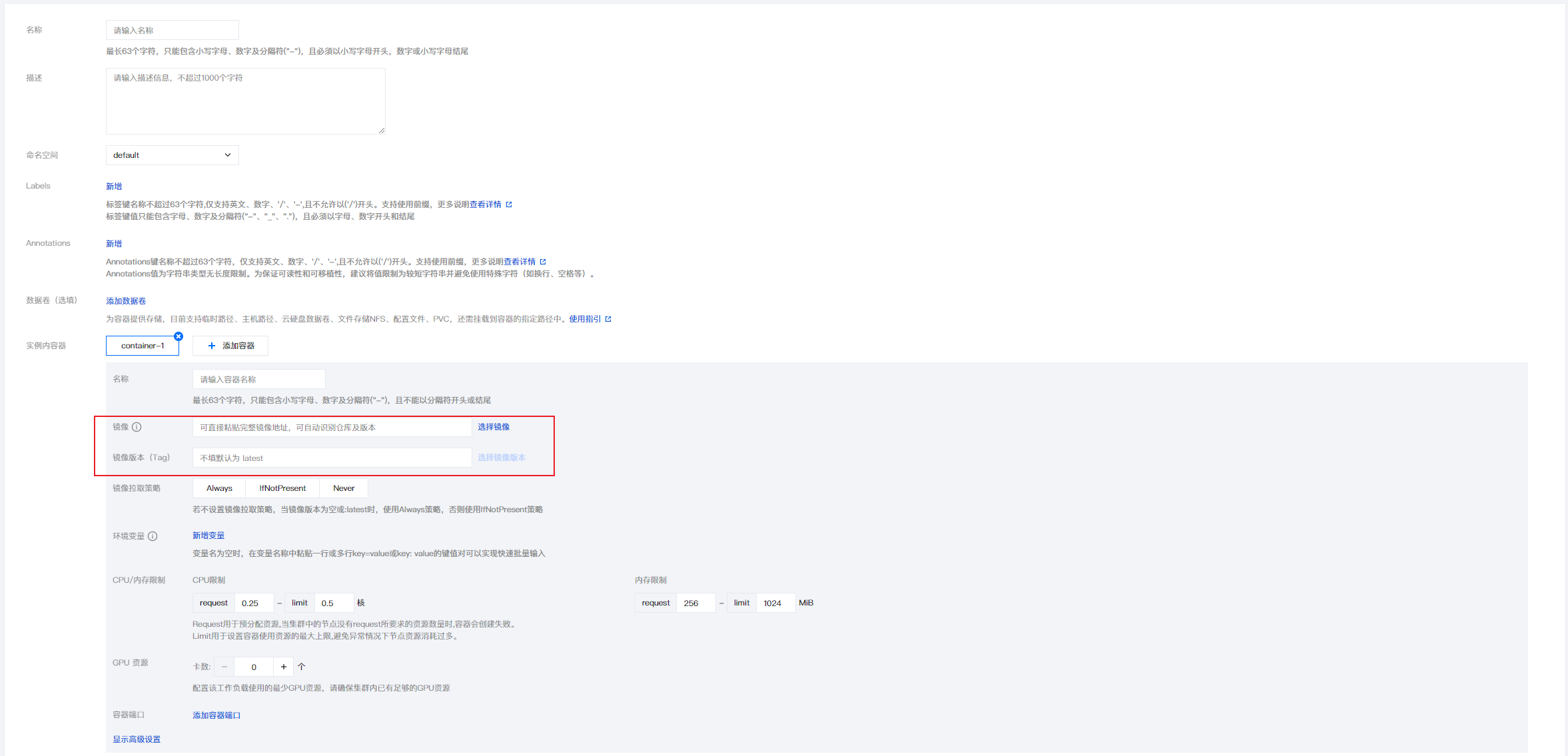 镜像版本(Tag):输入步骤3上传的镜像版本。