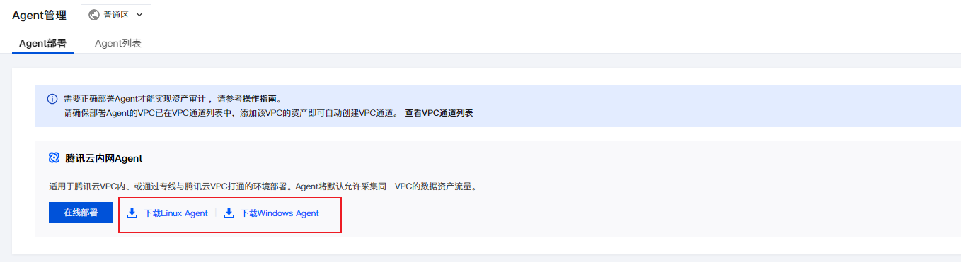 1. 在左侧导航栏中,单击系统管理 > Agent 管理,进入 Agent 部署页面。选择并下载 Agent 。