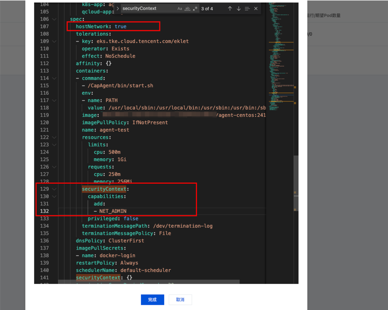 spec:hostNetwork: true #true表示开启hostNetwork,使得Daemonset Pod可以感知到Host机器上的网络设备。containers:securityContext:capabilities:add:- NET_ADMIN #- NET_ADMIN表示增加NET_ADMIN能力,用于监听网络设备的流量。