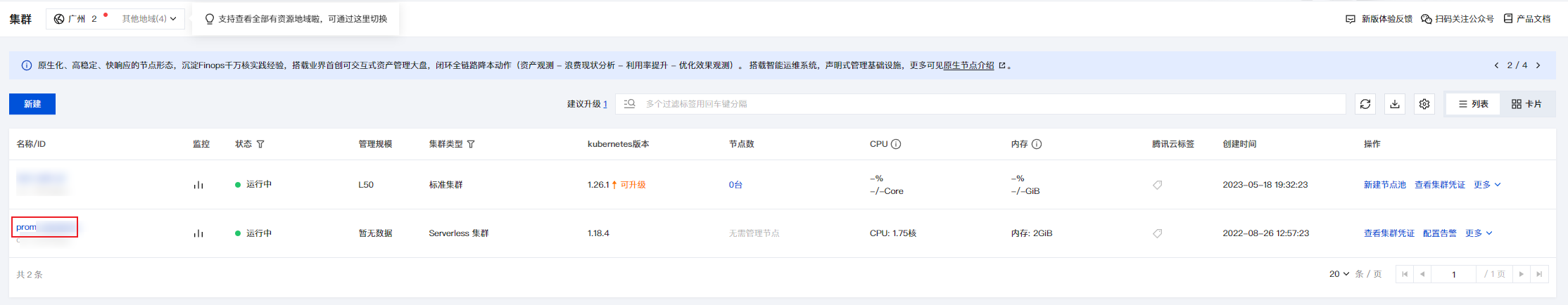 1. 登录 TKE 控制台,选择目标集群,单击集群名称。