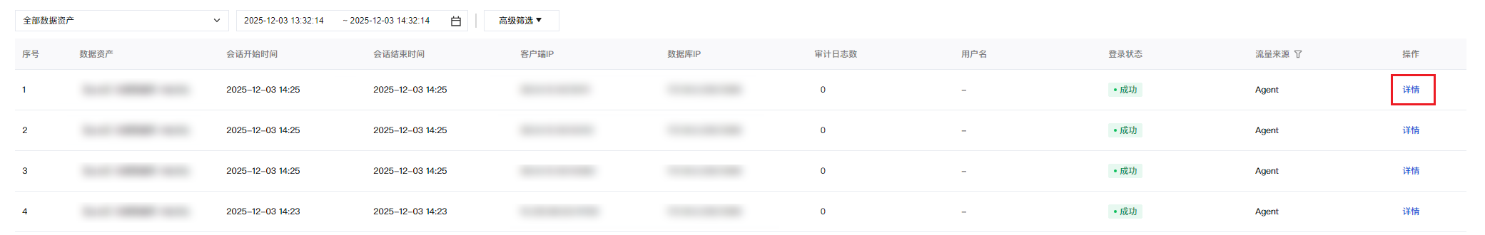 3. 在审计会话页面,可单击某条记录详情,进入审计会话详情页面。