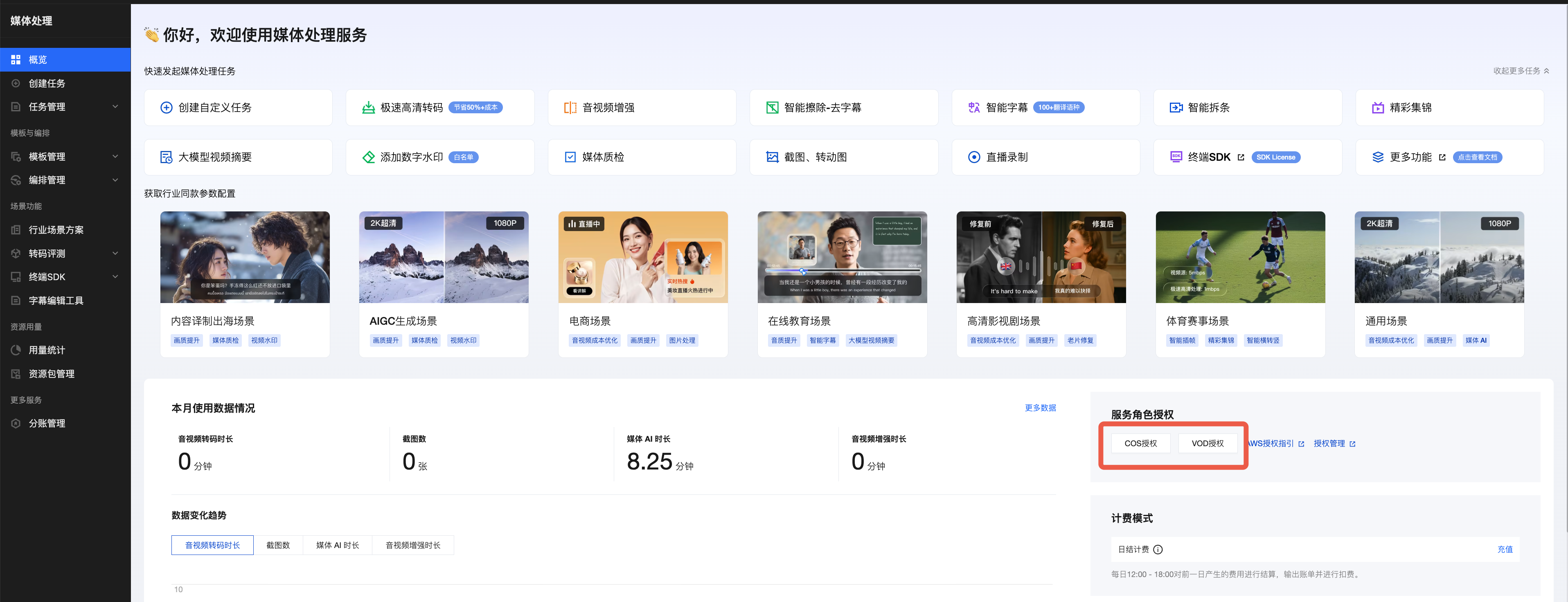 该授权操作无需开通 COS 或 VOD,也不会产生 COS 或 VOD 费用,只是允许 MPS 产品获取 COS 和 VOD 产品必要的 API 读写权限。