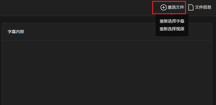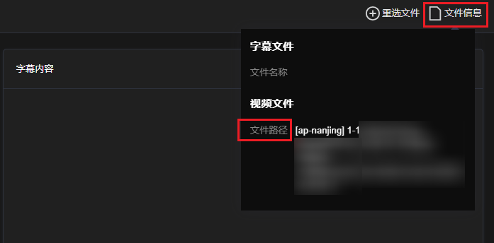 单击右上角文件信息,查看已添加文件的路径。对于添加的本地文件,仅展示文件名称;支持重新添加文件,单击右上角重选文件,重新选择字幕/视频文件。