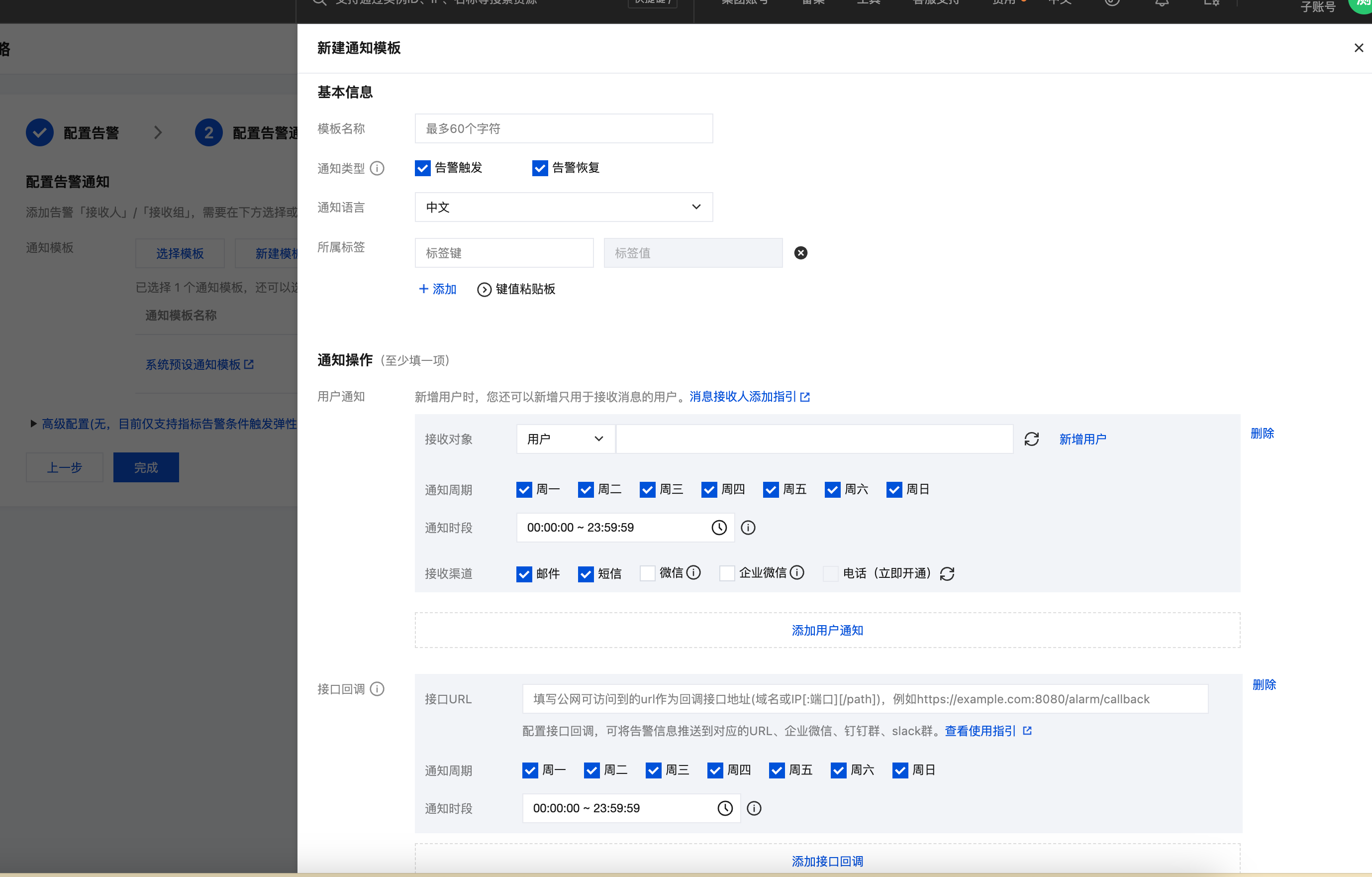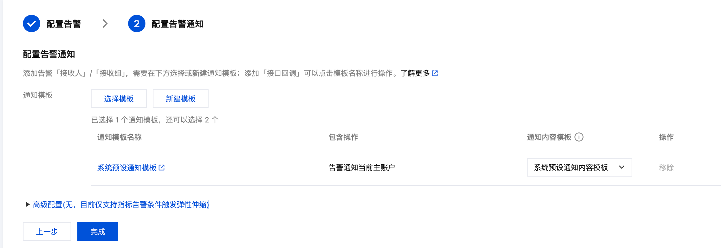 4. 配置通知模板,可单击选择模板选择已有模板或单击新建模板新建通知模板。