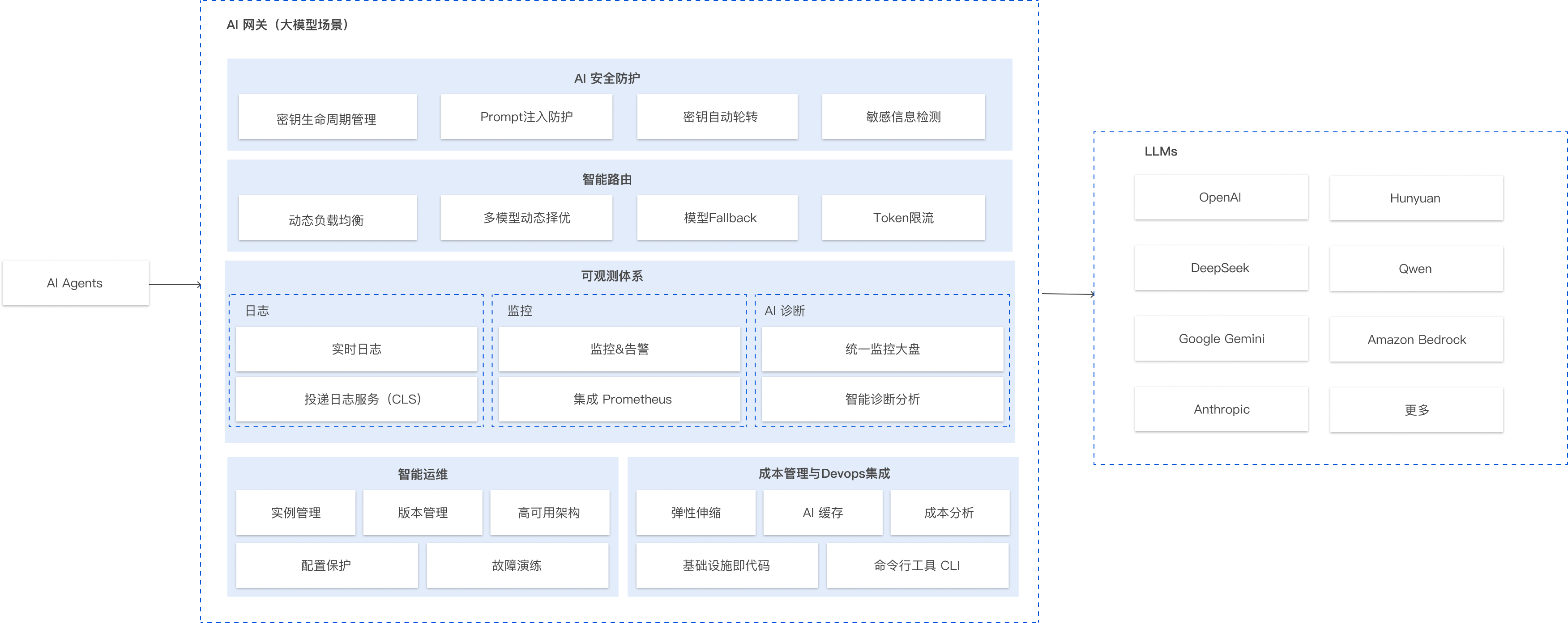 大模型技术快速发展使得企业需要同时接入多个AI模型,但缺乏统一治理平台导致模型使用混乱。不同模型在性能、成本、适用场景上存在显著差异,人工调度难以实现快速资源配置。流量波动剧烈时,单一模型容易成为性能瓶颈,且模型调用成本控制困难,总体拥有成本不可控。