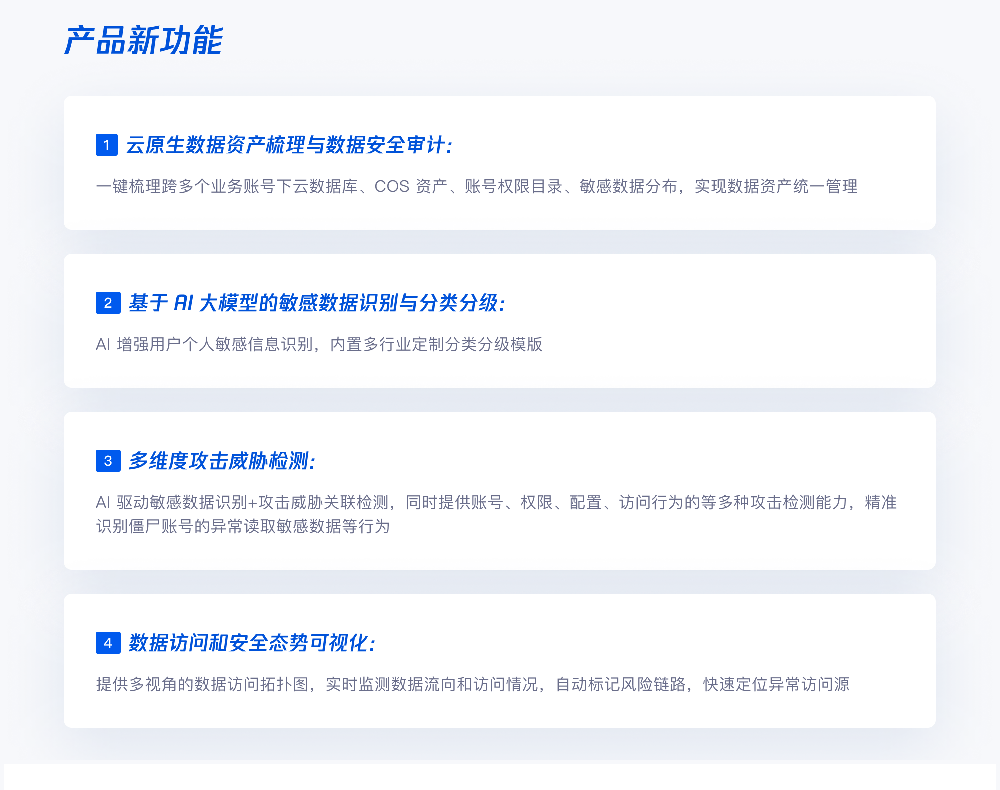 新增以下功能:1.支持跳转查看数据、特征及模型血缘。2.特征、模型、实验支持按照实体进行用户级别权限的授权。3.支持模型服务质量监控,以及触发重新训练。4.特征管理整体升级,支持 DLC、EMR 为离线特征,Redis 为在线特征,并支持离在线特征同步。5.在线推理支持自定义镜像,支持负载均衡。6.新增支持基于 GPU 的深度学习训练、实验管理记录、深度学习模型管理、深度学习模型服务部署等。7.新增支持分类、回归、时序预测等场景的无代码 AutoML 实验。8.故障注入时对架构上下游链路影响难观测问题。