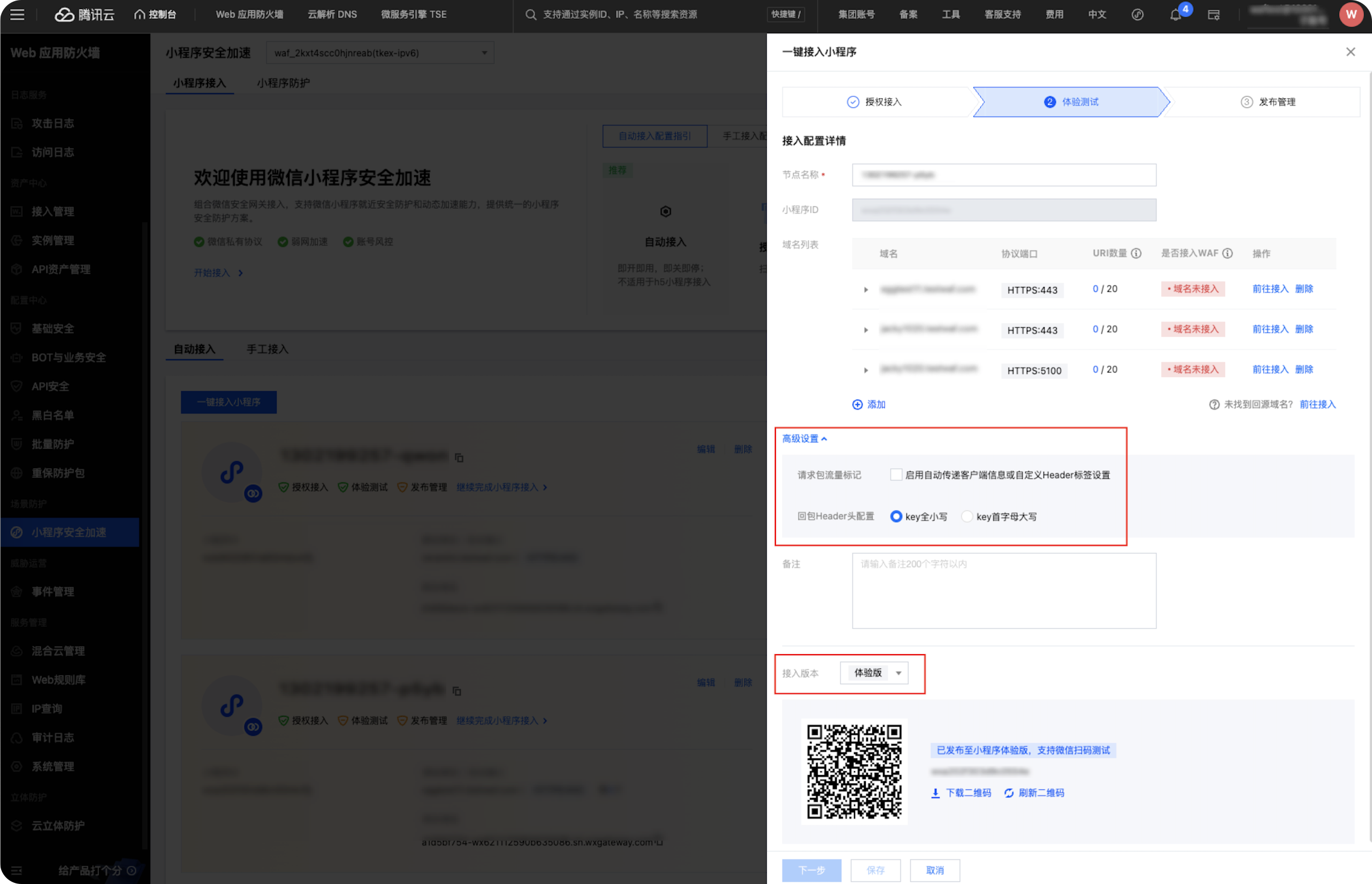 b.【优化】小程序安全加速自动和手工接入支持高级配置,允许用户自定义回包header头字段名称首字母大小写设置。