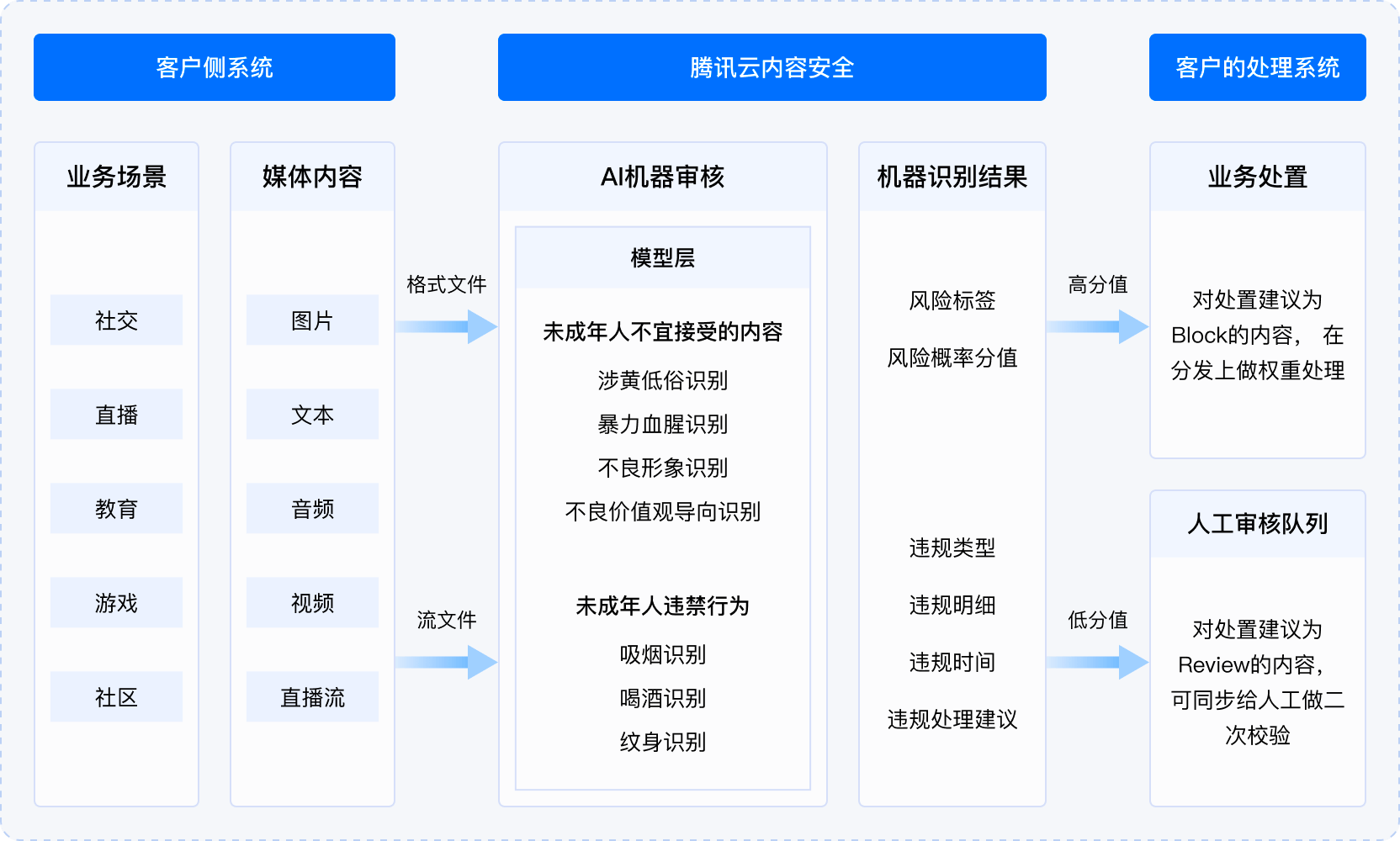 通过对多场景内容的分析,识别不良违规内容,构建内容安全防线,为未成年人筑牢清朗网络环境,守护未成年人成长。