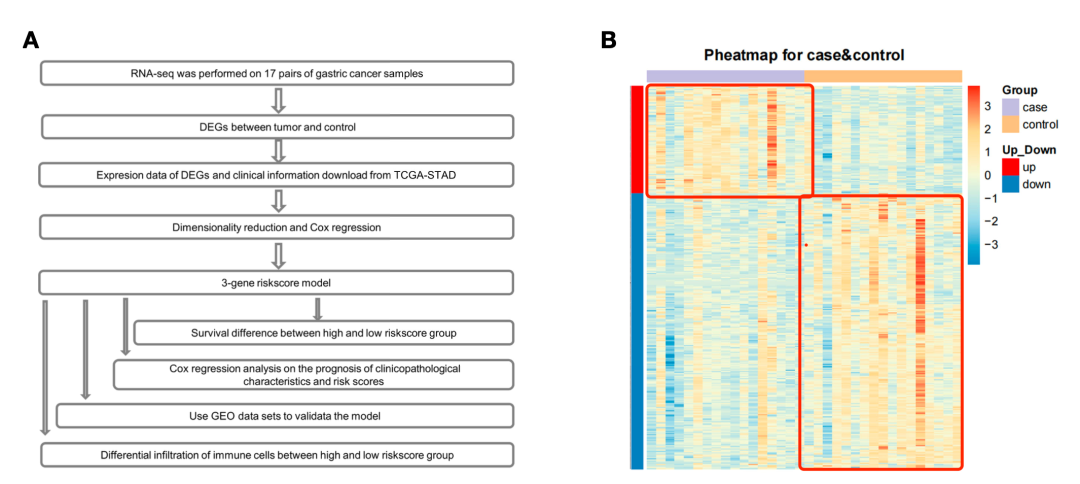 我也不知道这么就刷到了大名鼎鼎的华大基因的单细胞团队的 Guibo Li 的癌症数据挖掘文章:《Identification of a 3-Gene Model as Prognostic Biomarker in Patients With Gastric Cancer》