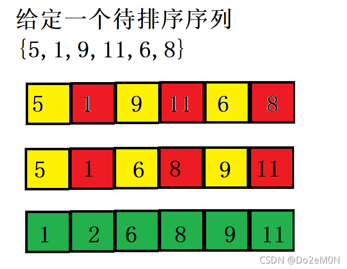希尔排序是把记录按下标的一定增量分组,对每组使用直接插入排序,随着增量逐渐减少,每组包含的元素越来越多,当增量减至1时,所有的元素被分成1组,实际上等同于执行一次插入排序,算法终止。 (就是拆开分组进行排序,排完之后再合并在一起再排序一遍。如下图所示。