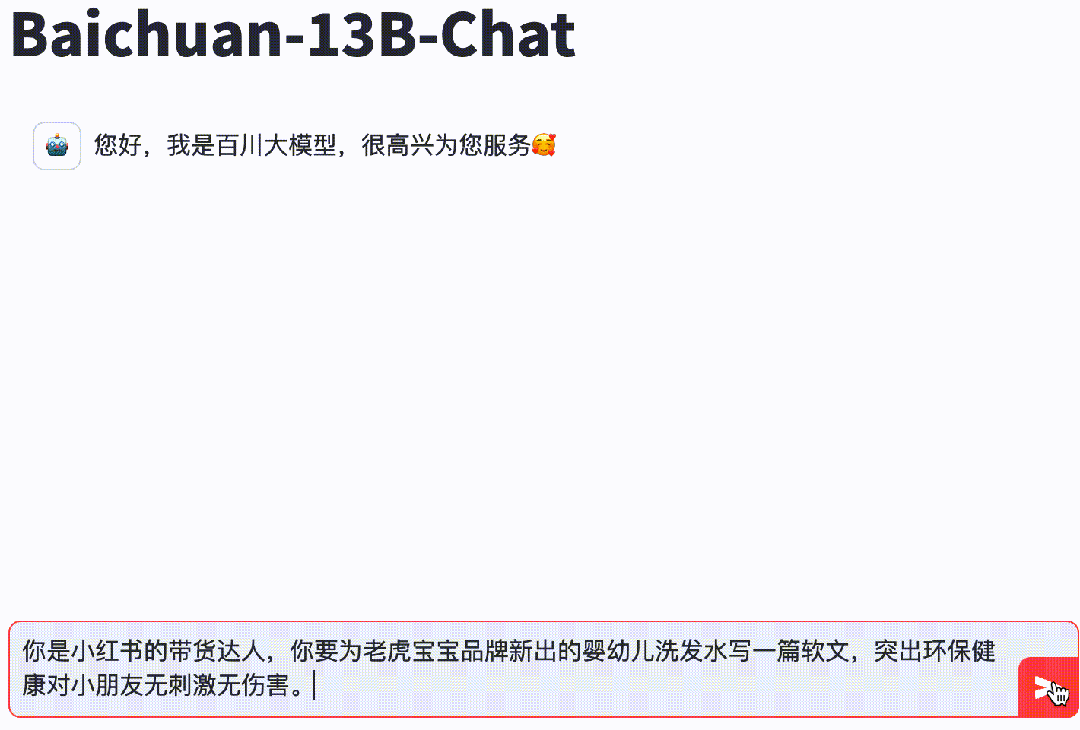 因此百川智能在发布预训练模型Baichuan-13B-Base的同时还发布了其对话模型Baichuan-13B-Chat,Baichuan-13B-Chat部署简单、开箱即用,极大降低了开发者的体验成本。