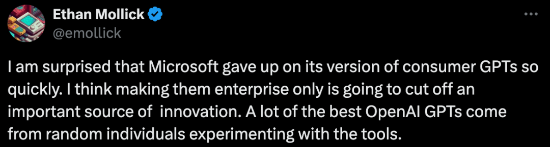 人工智能影响者、宾夕法尼亚大学沃顿商学院教授 Ethan Mollick 也对此表示惊讶,认为这可能会阻碍草根用户的创新。