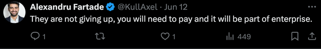 网友 Alexanaru Fartade 称,微软并未放弃,只是需要用户支付相应的费用,而这将成为企业级服务的一部分。