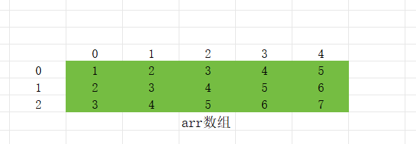7 }--我们怎样访问整个二维数组呢,其实我们只要能够按照一定的规律产生所有的行和列的数字就行;以上一段代码中的arr数组为例,行的选择范围是0~2,列的取值范围是0~4,所以我们可以借助循环实现生成所有的下标。