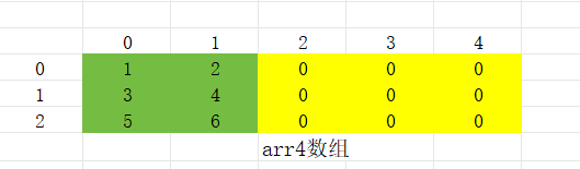 1 int arr4[3][5] = {{1,2},{3,4},{5,6}};