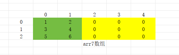 3 int arr7[][5] = {{1,2}, {3,4}, {5,6}};