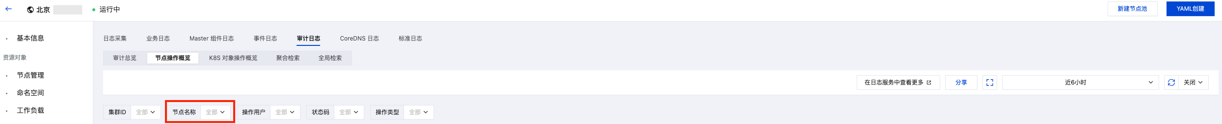 3. 在左侧导航栏中选择日志,在审计日志页面,选择节点操作概览页签。