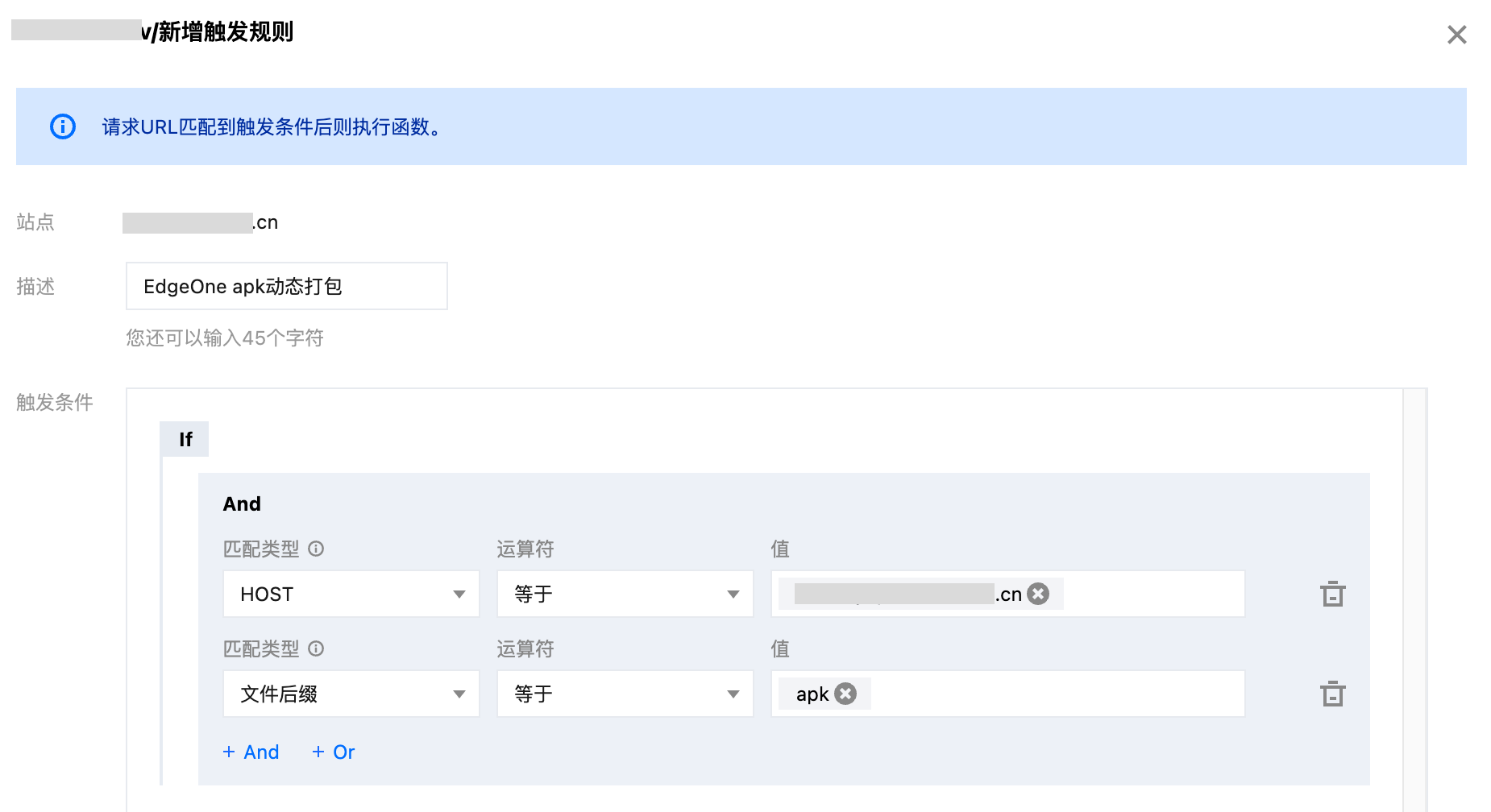 通过 EdgeOne 边缘函数,我们可以动态地将渠道信息写入到 APK 包内。用户只需访问与边缘函数绑定的域名并进行触发配置,就可以触发该边缘函数,从而实现 APK 的动态打包和加速分发。
